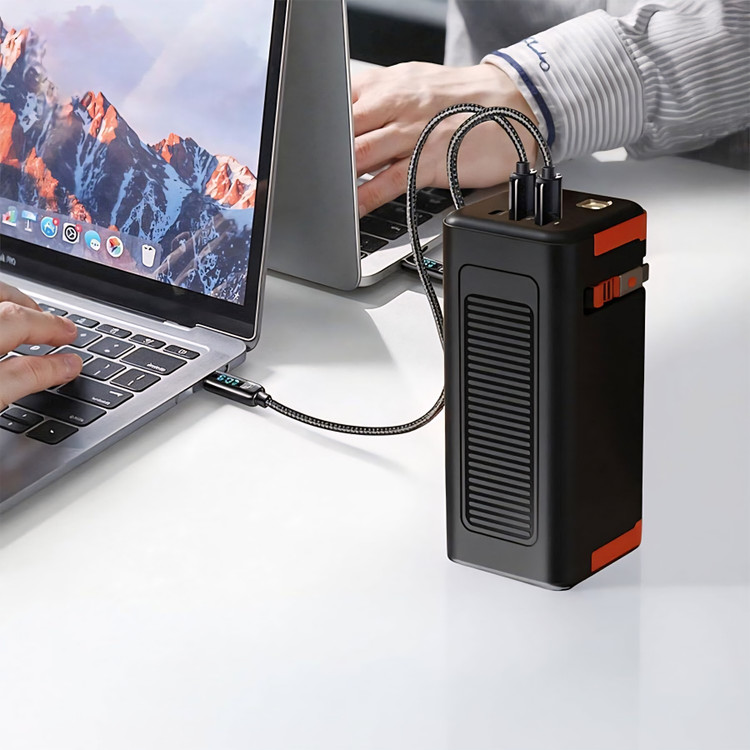 یکی از جذابترین بخشهای این مدل، کابل Type-C داخلی و جمعشونده آن است. همین ویژگی پاوربانک را برای سفر و استفاده بیرون از خانه بسیار کاربردی میکند؛ چرا که همیشه یک کابل درون خودش دارد.
