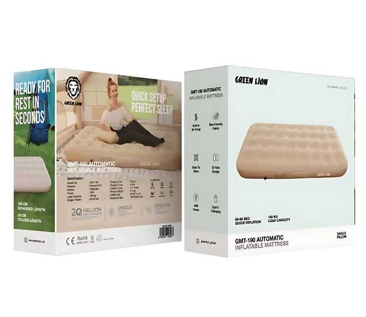 تشک بادی اتوماتیک Green Lion GMT-190 – راحتی فوقالعاده برای سفر، کمپ و خانه