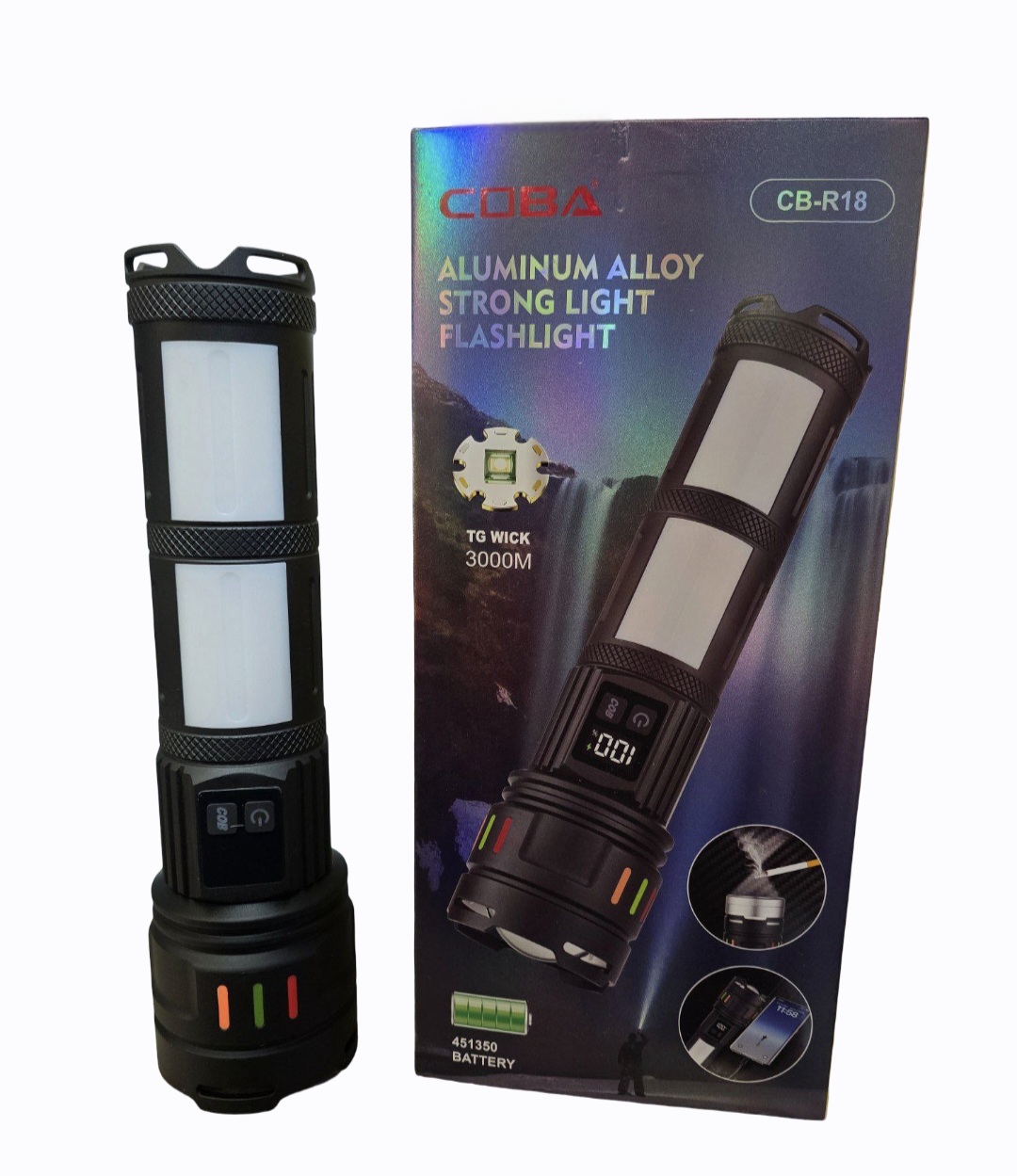 چراغ قوه حرفهای COBA مدل CB‑R18 – روشنایی در ابعاد یک کیلومتر و بدنه آلومینیومی ضد ضربه و پاور بانک