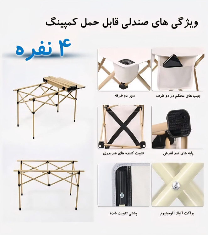 میز و صندلی تاشو مسافرتی 4 نفره دارای کیف حمل | جمع‌وجور و مقاوم همراه سفر و کمپ شما