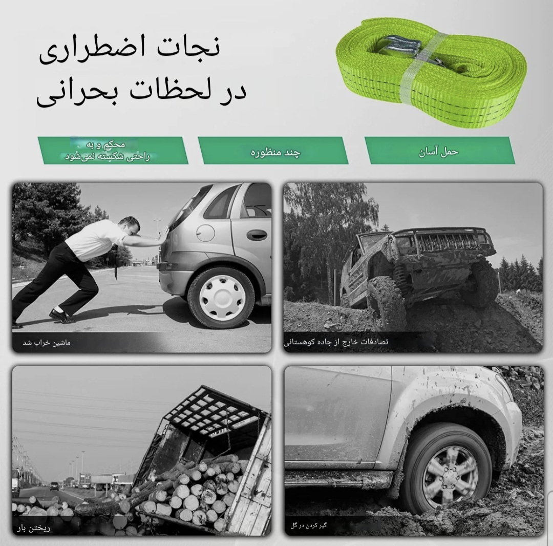 طناب بکسل خودرو Tow Rope همراه با کیف نگهدارنده