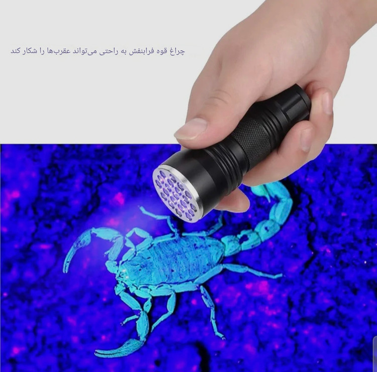 چراغ قوه LED مخصوص شناسایی عقرب یک ابزار کاربردی و ضروری برای افرادی است که در مناطق گرم و کویری مانند یزد زندگی میکنند یا اهل طبیعتگردی، کمپ، کوهنوردی و شبمانی در فضای باز هستند. این چراغ قوه با استفاده از نور فرابنفش (UV) باعث میشود عقربها در تاریکی شب بهصورت کاملاً درخشان و واضح دیده شوند؛ چون بدن عقربها بهطور طبیعی تحت نور UV میدرخشد.