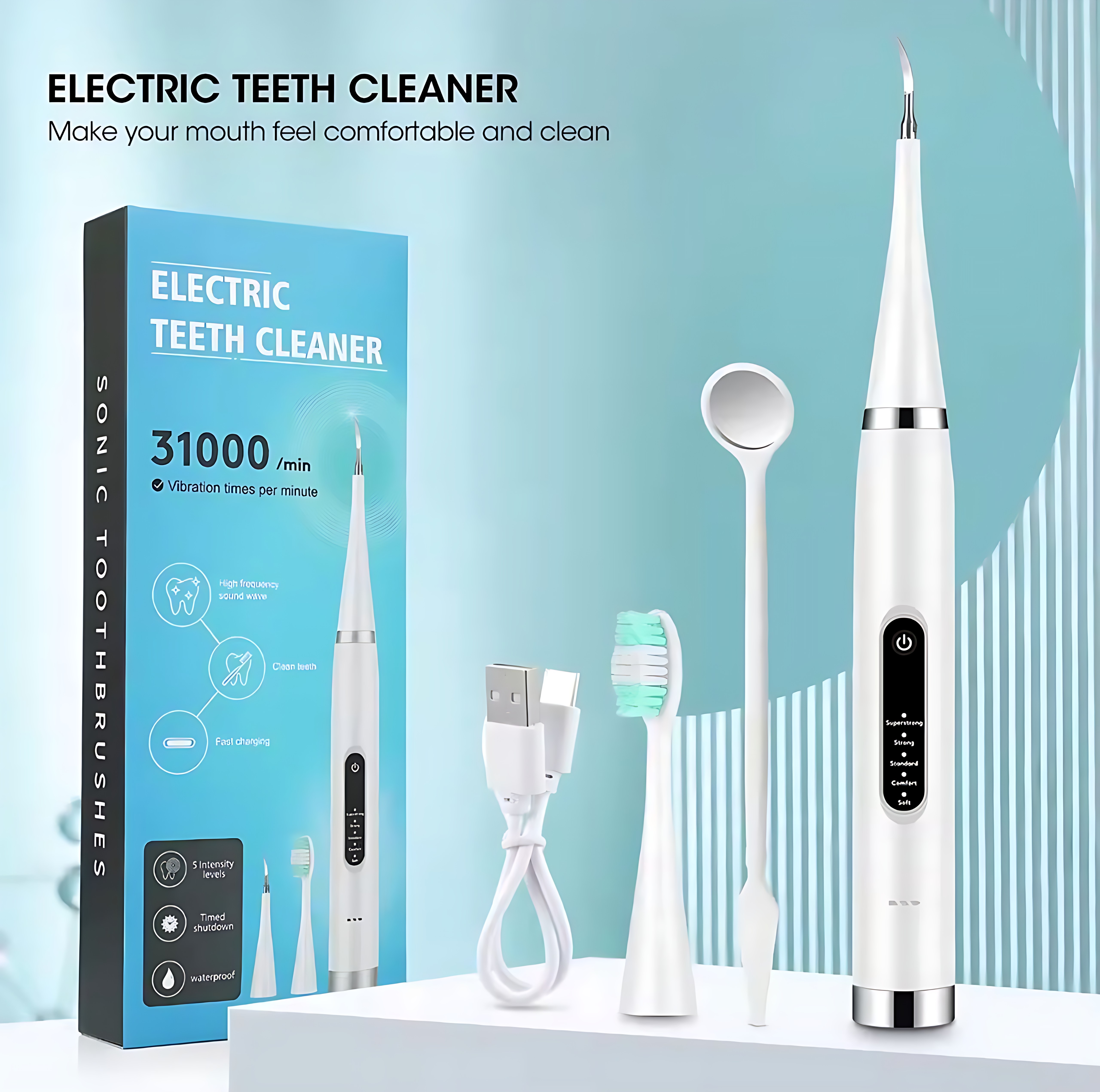 جرمگیر و مسواک برقی دندان Electric Teeth Cleaner | پاکسازی عمیق با 31000 لرزش در دقیقه