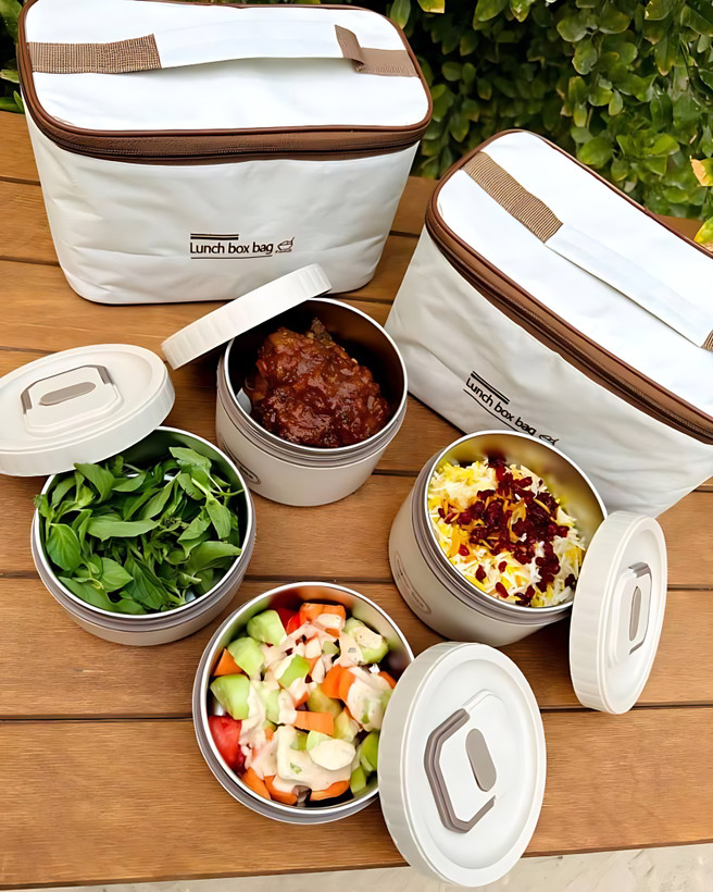ظرف غذای چهار تیکه Lunch box bag همراه با کیف عایق گرما