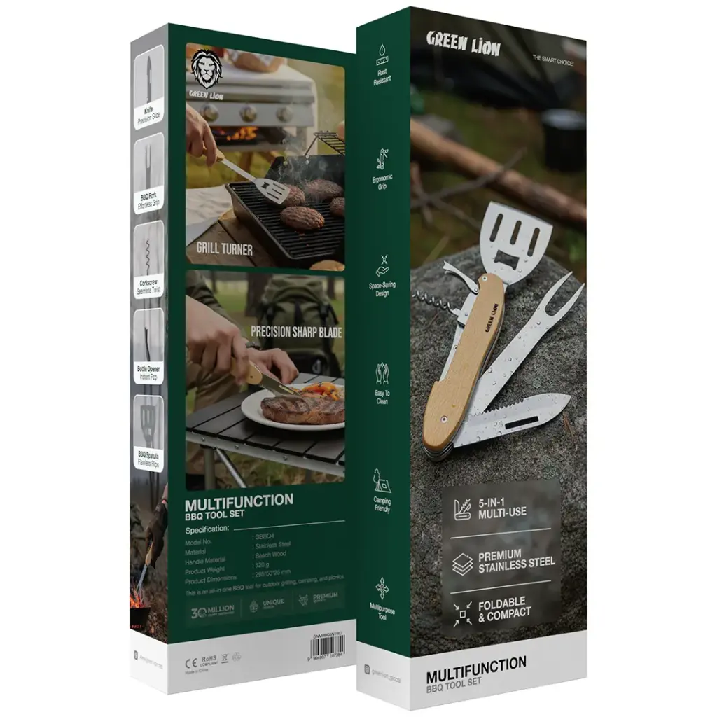 اگر تجربهی درست و بیدردسر در شویۀ باربیکیو برایتان اهمیت دارد، این ابزار چندکاره از برند Green Lion ترکیبی از کیفیت، کاربرد و طراحی هوشمندانه را با هم ارائه میدهد. این ابزار برای کسانی که در فضای باز، پیکنیک، کمپینگ یا حتی حیاط خانه دوست دارند غذاهای گریلشده درست کنند، گزینهای ایدهآل است که تمام نیازهای پایه را در یک مجموعه جمع و جور پوشش میدهد.