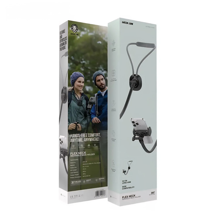 هولدر گردنی Green Lion Flex Neck Wearable Neck Holder یک پایه نگهدارنده انعطافپذیر و قابل حمل برای گوشیهای هوشمند است که به شما امکان میدهد بدون نگه داشتن تلفن، فیلم ببینید، تماس تصویری داشته باشید، یا محتوا تولید کنید.