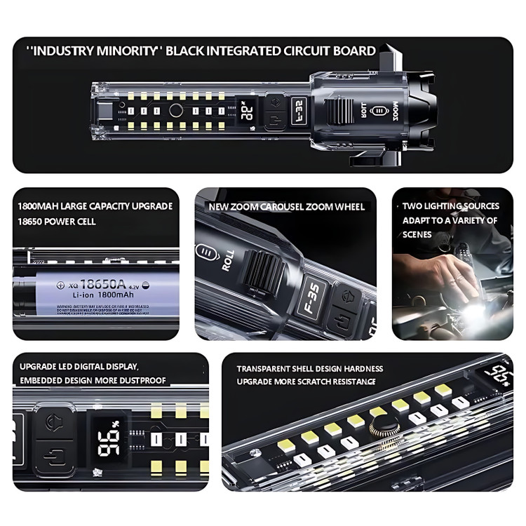این چراغ قوه با ترکیب امکانات روشنایی، ابزار اضطراری و پشتیبانی انرژی طراحی شده تا در شرایط مختلف همراه همیشگی شما باشد: