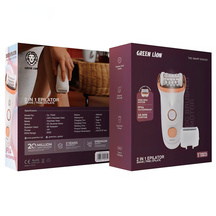 اپیلاتور و شیور صورت و بدن گرین لاین Green Lion 2 in 1 Epilator Shave,Trim, Epilate