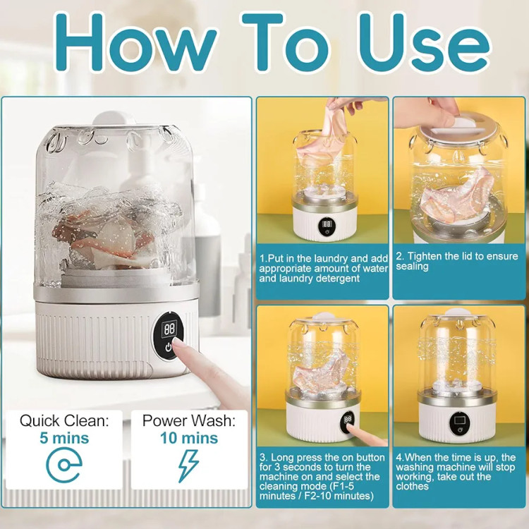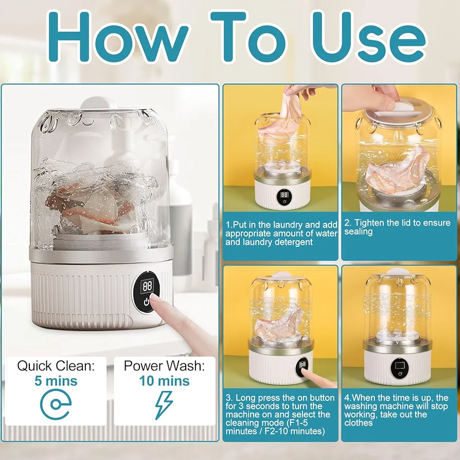 ماشین لباسشویی هوشمند 1 لیتری شارژی | ایدهآل برای لباسهای حساس