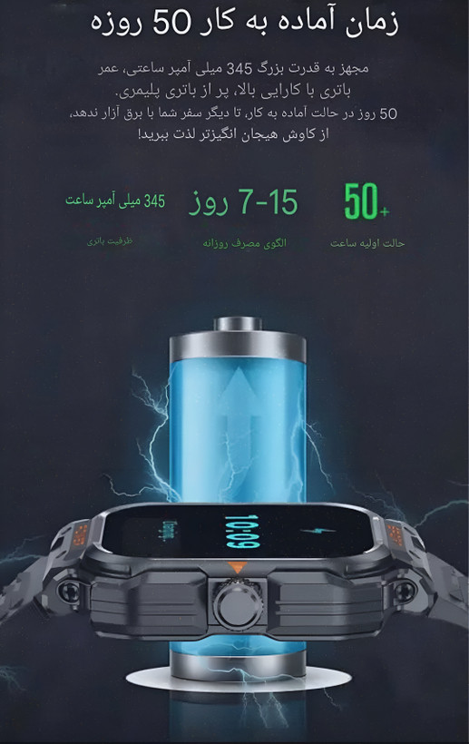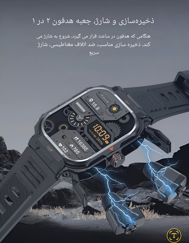 ✅ عمر باتری طولانی – 4.5 ساعت پخش موسیقی با ایربادها و 7 تا 15 روز عمر باتری ساعت