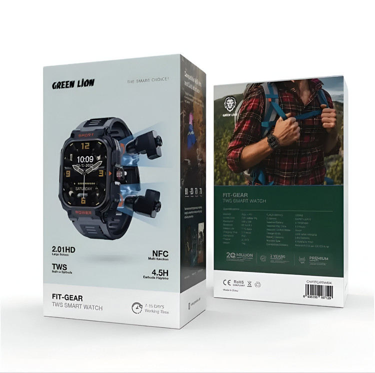 Green Lion FIT-GEAR TWS گزینهای عالی برای افرادی است که به دنبال ترکیب فناوری و سبک زندگی هوشمند هستند. با این ساعت، علاوه بر داشتن یک نمایشگر بزرگ و کاربردی، از ایربادهای داخلی نیز بهرهمند میشوید که در هر لحظه امکان گوش دادن به موسیقی یا پاسخ دادن به تماسها را فراهم میکند.