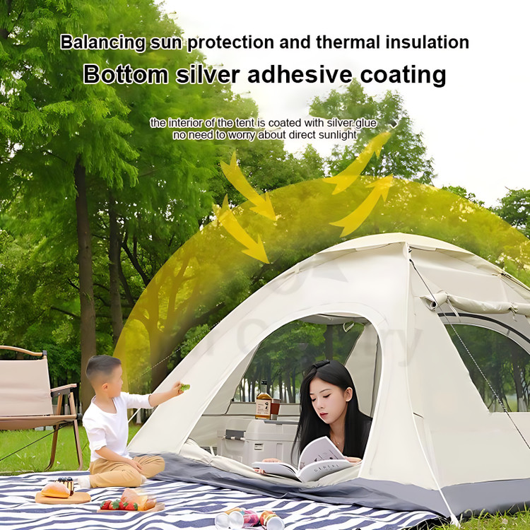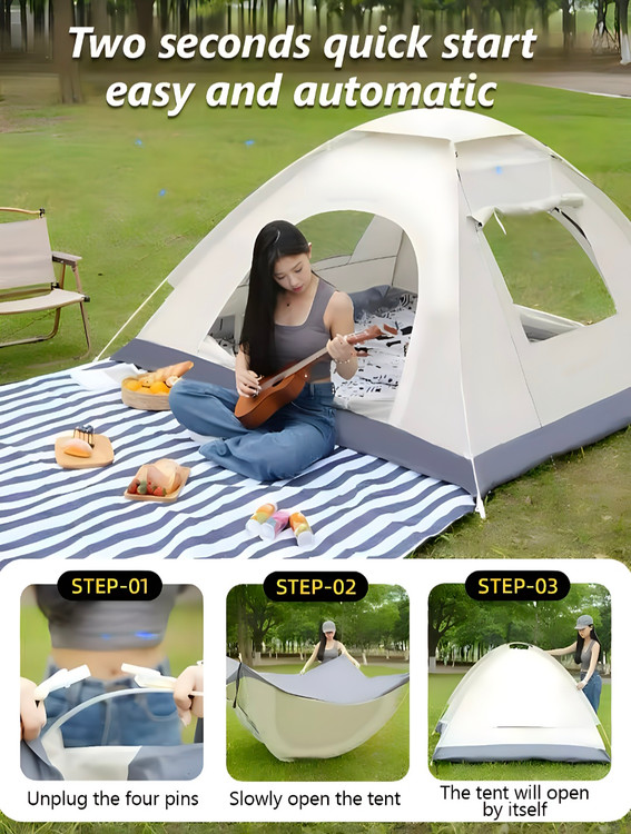 این سیستم خودکار به شما امکان می دهد در یک دقیقه چادر را باز کنید . فقط آن را باز کنید و اکنون یک چادر فوری دارید ! شما به هیچ ابزار یا حتی کمک اضافی نیاز ندارید ! تیرهای محکم و از پیش نصب شده و ساختار سبک وزن ، فرآیند مونتاژ را ساده و کارآمد می کند و به شما امکان می دهد از تعطیلات در فضای باز خود به طور کامل لذت ببرید .