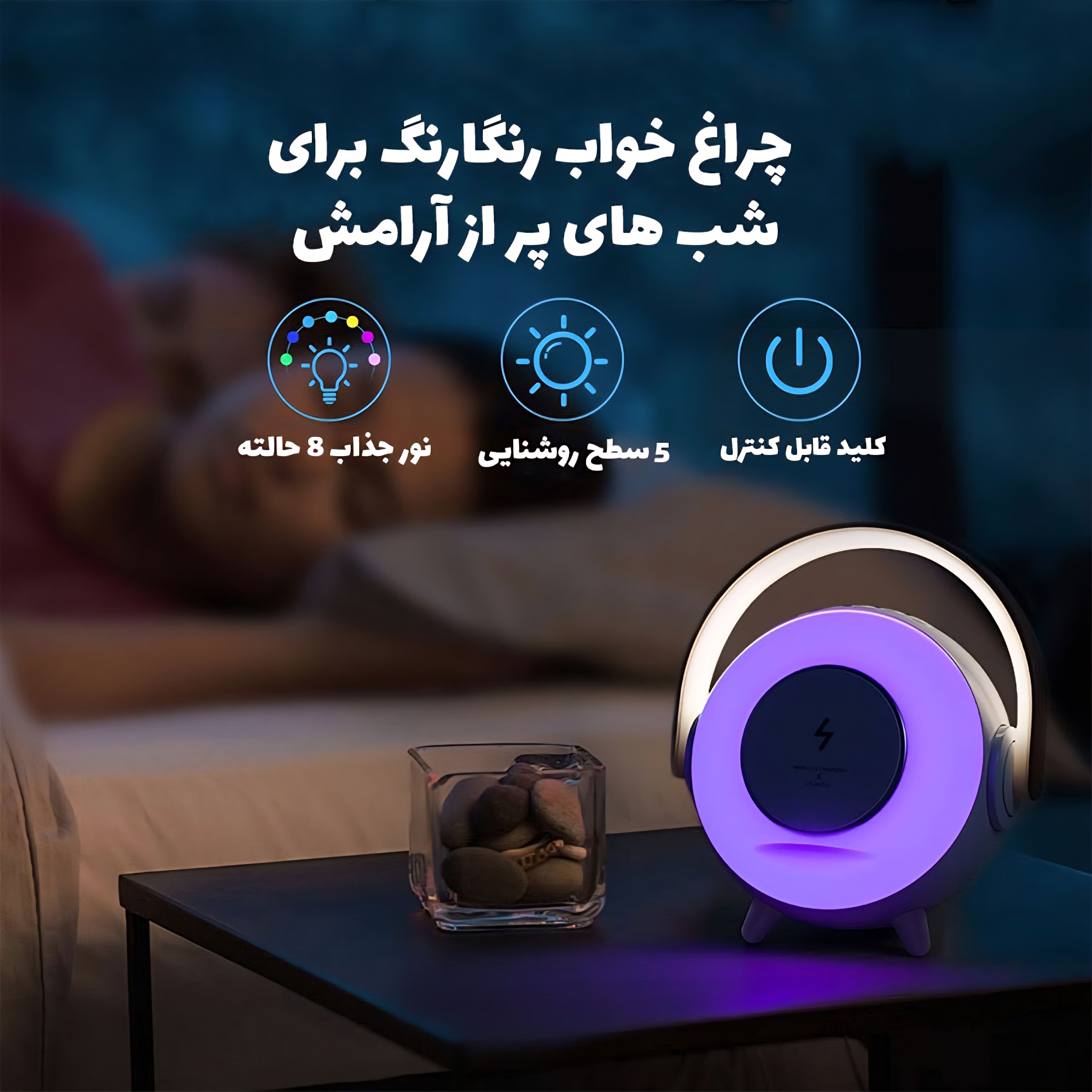 این دستگاه بهصورت همزمان چراغ رومیزی (Table Lamp)، اسپیکر بلوتوثی با صدای با کیفیت و بیسیم شارژر 15 وات برای گوشیهای سازگار است – همه در یک بدنه جمعوجور و زیبا.