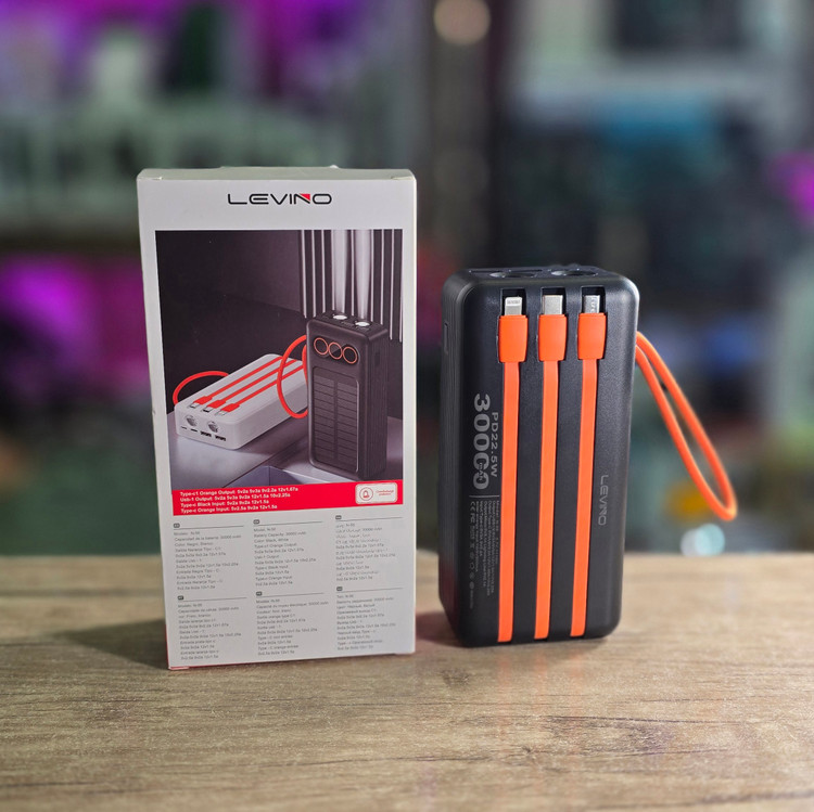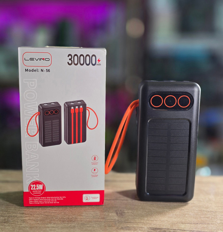 پاور بانک خورشیدی LEVINO مدل N-56 ظرفیت 30000mAH | شارژ سریع ۲۲.۵ وات