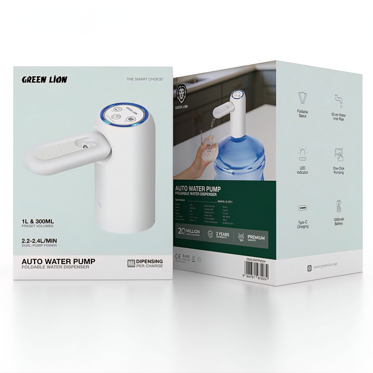 پمپ آب شارژی Green Lion Auto Water Pump (GL‑WD11) یک دستگاه تاشو، سبک و کاملاً دیجیتال است که با باتری داخلی قدرتمند و شارژ USB‑C، امکان استفاده بدون نیاز به پریز برق را فراهم میکند. طراحی مینیمال و بدنه سفید رنگ، علاوه بر زیبایی، امکان حمل آسان را برای شما به ارمغان میآورد.