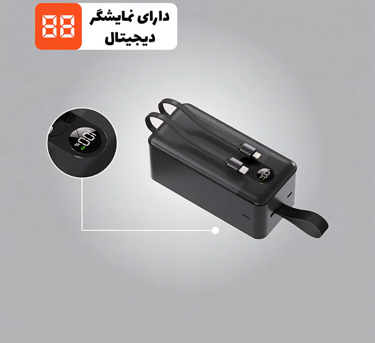 - قیمت رقابتی نسبت به سایر پاوربانکهای ۵۰ هزار میلیآمپر ساعت با کابل یکپارچه.